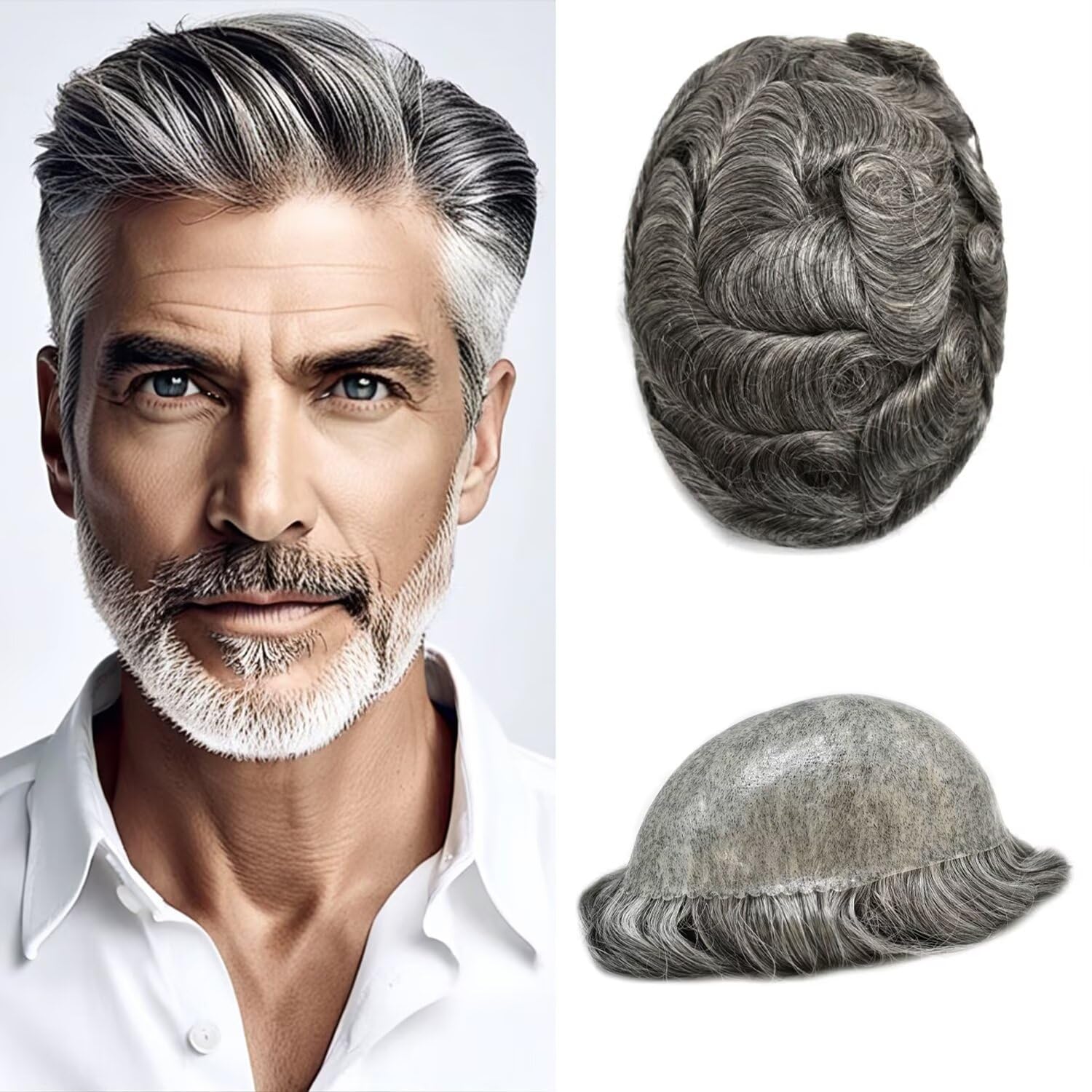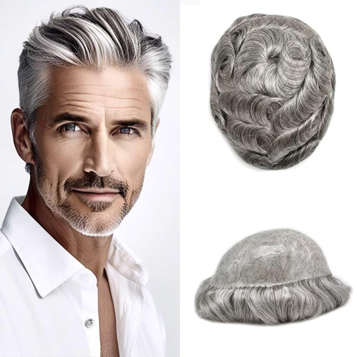 Durable Thin Poly Mens Toupee Human Hair Replacement System ๐๐๐ฌ๐ ๐ ๐๐๐ญ๐ฎ๐ซ๐: Base material๏ผ0.1MM Durable Clear Poly Base Materials,Thickness is 0.1mm,Scallop PU Front. Base size๏ผ6"x8",6"x9",7"x9",8"x10"=width(left to right) x length(front to back) Made method: PU Injection ๐๐๐ข๐ซ ๐ ๐๐๐ญ๐ฎ๐ซ๐: Hair material:Indian Human Remy Hair Piece๏ผGray Hair is Synthetic Fiber Hair length:6 Inch Short Hair Hair texture: 32mm Natural Wave Hair density: 120% Med-Light to Medium Density Hair colors:More Than 77 Colors Are Avaiable Hair style: Free Style