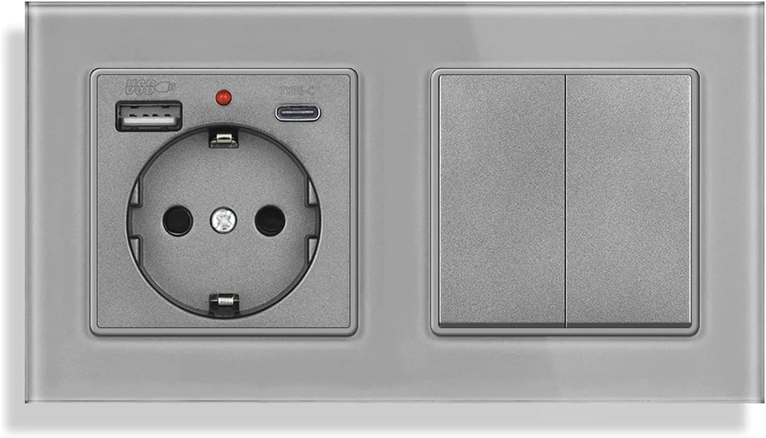 Standard Outlets==========Material : GlassInstallation Type : Wall EmbeddedFeatures : With USB PortsExtension Cable Length : NoneRated Current : 16AApplication : Residential / General-PurposeGrounding : Standard GroundingOrigin : Mainland ChinaCertification : CE,RoHSPower : 16A 250VFeatures : EU wall power socketProduct name : wall socket for EU/Russia / Spain / GermanyPanel material : 3mm crystal tempered glassPanel size : 82/153/224mm*82mmColor : Greystandard : EU standardMounting hole distance : 60mmfixed way : 1.4mm Iron frame IronInstallation method : Iron claw fixation or screw fixationApplicable installation box : 100% European round mounting boxInstallation direction : Horizontal and verticalProduct Composition : Function modules and panelsCertification : CE RoHS CCC EMC CQC