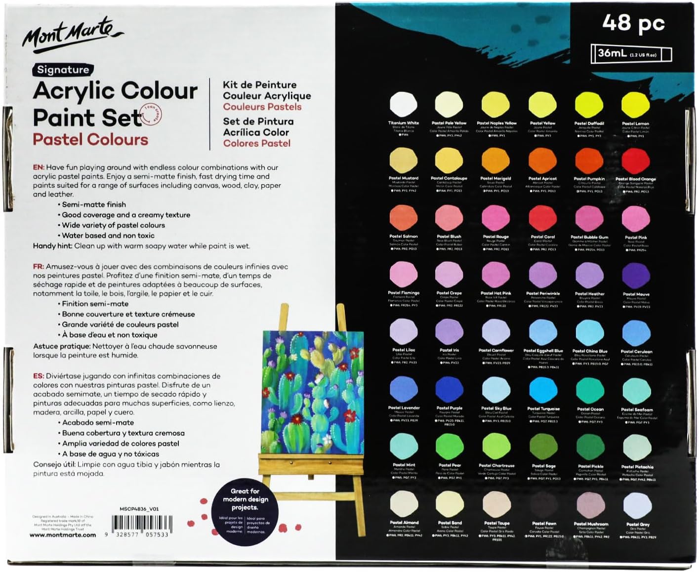 Mont Marte MSCP4836 Acrylic Colour Pastel Colours Paint Set - 36ml Set of 48